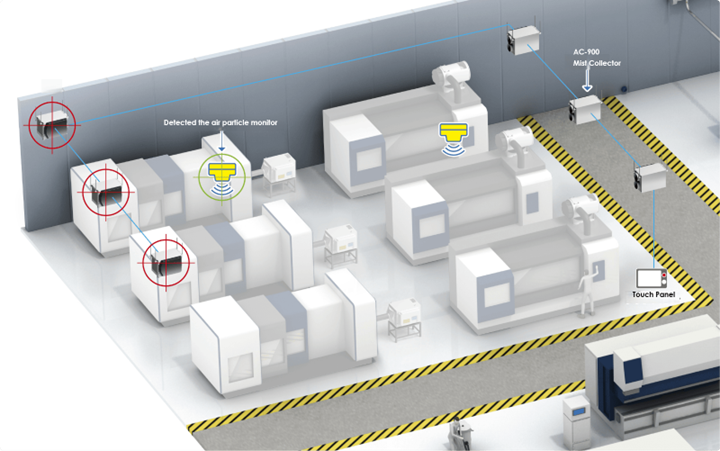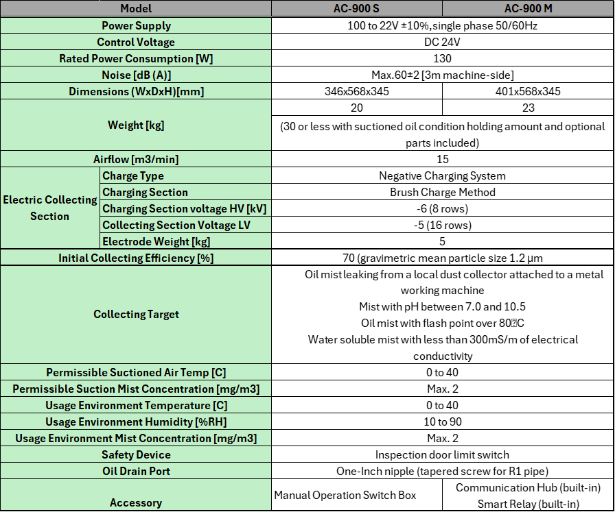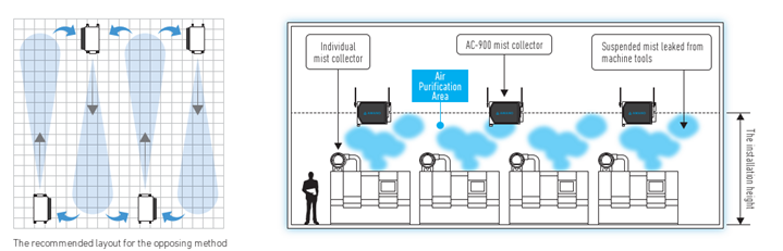 AMANO’s AC-900 protects workers and equipment from air borne oil mist in indoor factory spaces. The ability to link multiple units together through web connectivity make the AC-900 to most innovative ceiling mounted mist collection system on the market.