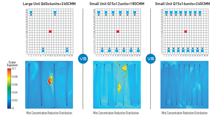 By distributing a larger number of small units, the air mixing capability is improved, which reduces air stagnation and enhances air cleanliness
