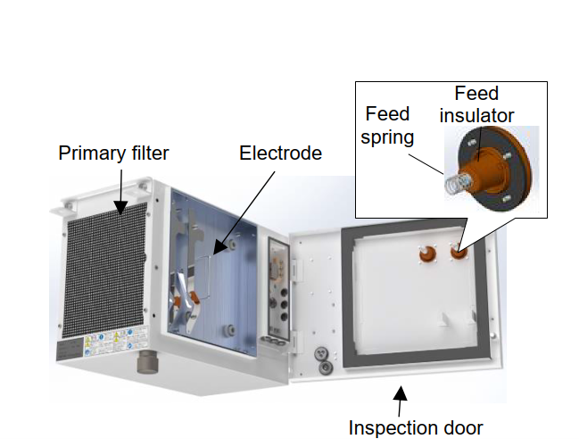 Air-containing mist particles pass through the charging electrode becoming positively charged. When this charged mist flows into the final stages of the mist collector, it is electrostatically attracted to the mist collector plate (ground electrode) where it is collected and trapped.